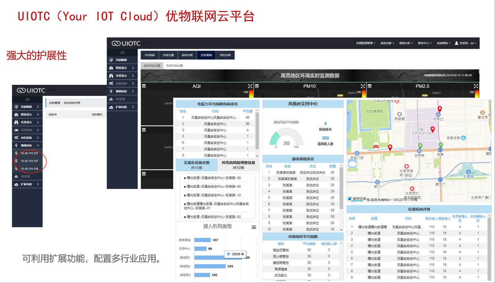 • UIOTC(Your IOT Cloud)優(yōu)物聯(lián)網(wǎng)云平臺(tái)采集終端,內(nèi)部集成UIOTC傳感器數(shù)據(jù)采集軟件,通過簡單的配置傳感器相應(yīng)通訊協(xié)議,實(shí)現(xiàn)即插即用,方便現(xiàn)場(chǎng)數(shù)據(jù)采集及數(shù)據(jù)上傳、轉(zhuǎn)發(fā)至應(yīng)用云平臺(tái)。同時(shí),實(shí)現(xiàn)超限報(bào)警功能。 基于柔性物聯(lián)網(wǎng)通用性,無需二次開發(fā),通過配置,形成深度行業(yè)應(yīng)用平臺(tái)。完備的權(quán)限管理、靈活的通訊協(xié)議配置,多終端訪問/預(yù)警等。